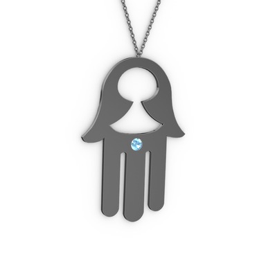 Akuamarin 925 ayar siyah rodyum kaplama gümüş kolye (40 cm gümüş rolo zincir)