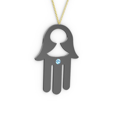 Akuamarin 925 ayar siyah rodyum kaplama gümüş kolye (40 cm gümüş rolo zincir)