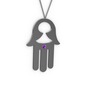 Ametist 925 ayar siyah rodyum kaplama gümüş kolye (40 cm gümüş rolo zincir)