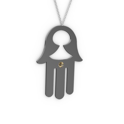 Dumanlı kuvars 925 ayar siyah rodyum kaplama gümüş kolye (40 cm beyaz altın rolo zincir)