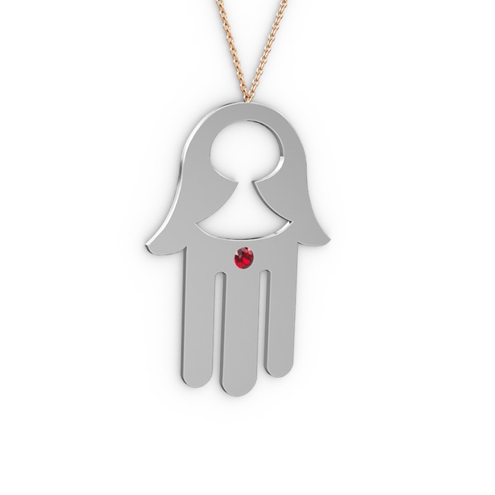 Garnet 8 ayar beyaz altın kolye (40 cm gümüş rolo zincir)