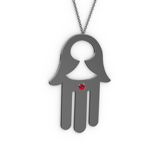 Garnet 925 ayar siyah rodyum kaplama gümüş kolye (40 cm gümüş rolo zincir)