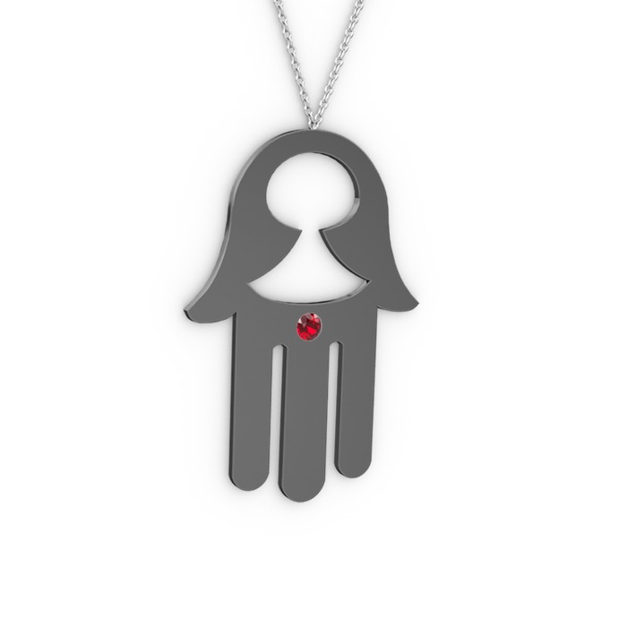 Garnet 925 ayar siyah rodyum kaplama gümüş kolye (40 cm gümüş rolo zincir)