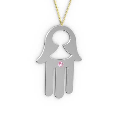 Pembe kuvars 18 ayar beyaz altın kolye (40 cm altın rolo zincir)
