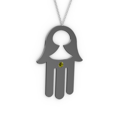 Peridot 925 ayar siyah rodyum kaplama gümüş kolye (40 cm beyaz altın rolo zincir)