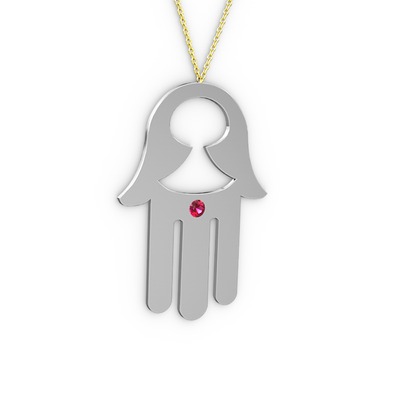 Rodolit garnet 14 ayar beyaz altın kolye (40 cm altın rolo zincir)