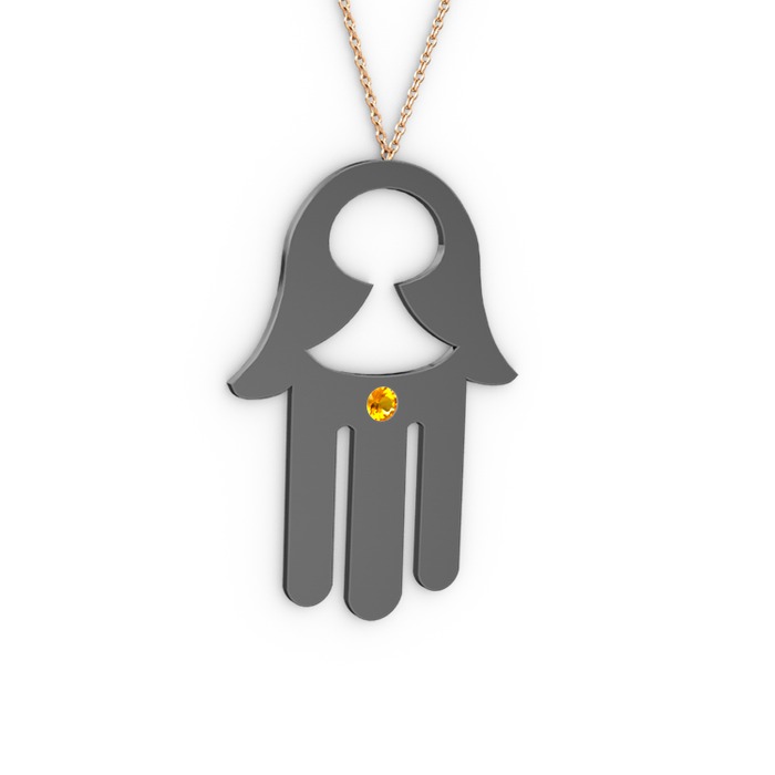 Sitrin 925 ayar siyah rodyum kaplama gümüş kolye (40 cm rose altın rolo zincir)