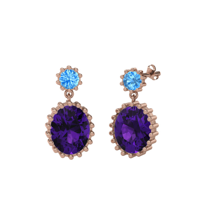 Akuamarin ve ametist 14 ayar rose altın küpe