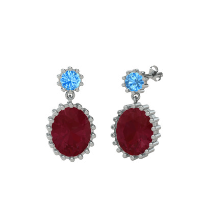 Akuamarin ve kök yakut 14 ayar beyaz altın küpe