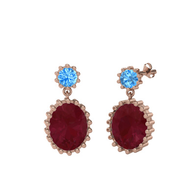 Akuamarin ve kök yakut 8 ayar rose altın küpe