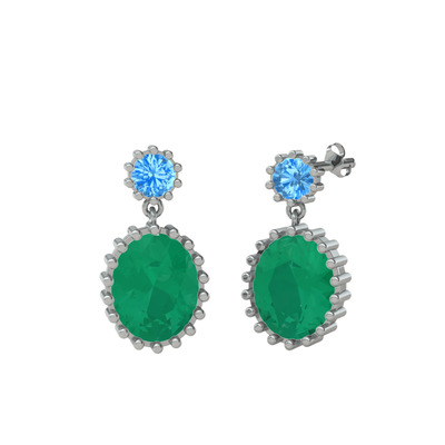 Akuamarin ve kök zümrüt 14 ayar beyaz altın küpe