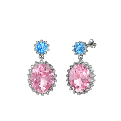 Akuamarin ve pembe kuvars 8 ayar beyaz altın küpe