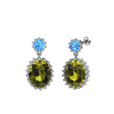 Akuamarin ve peridot 18 ayar beyaz altın küpe