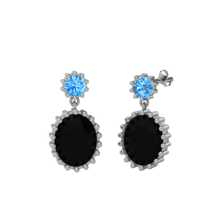 Akuamarin ve siyah zirkon 18 ayar beyaz altın küpe