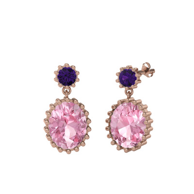Ametist ve pembe kuvars 14 ayar rose altın küpe