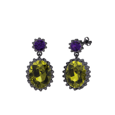 Ametist ve peridot 925 ayar siyah rodyum kaplama gümüş küpe