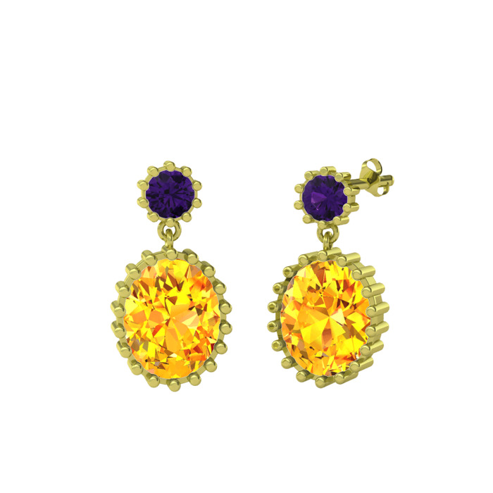 Ametist ve sitrin 925 ayar altın kaplama gümüş küpe