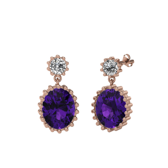 Beyaz zirkon ve ametist 14 ayar rose altın küpe