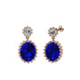 Beyaz zirkon ve lab safir 8 ayar rose altın küpe