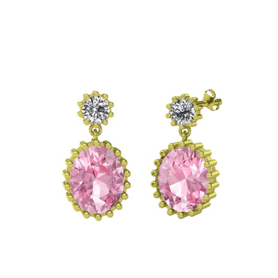 Beyaz zirkon ve pembe kuvars 18 ayar altın küpe