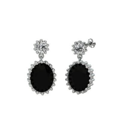Beyaz zirkon ve siyah zirkon 8 ayar beyaz altın küpe