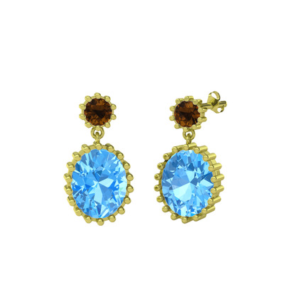Dumanlı kuvars ve akuamarin 14 ayar altın küpe