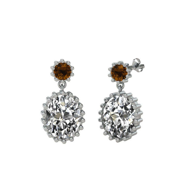 Dumanlı kuvars ve beyaz zirkon 18 ayar beyaz altın küpe