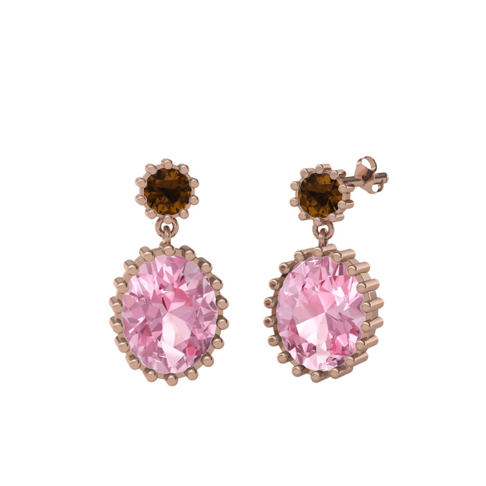 Dumanlı kuvars ve pembe kuvars 18 ayar rose altın küpe