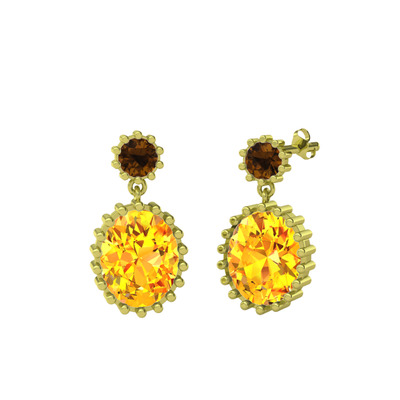 Dumanlı kuvars ve sitrin 925 ayar altın kaplama gümüş küpe