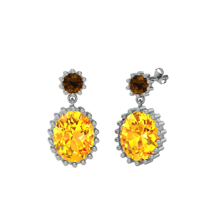 Dumanlı kuvars ve sitrin 925 ayar gümüş küpe