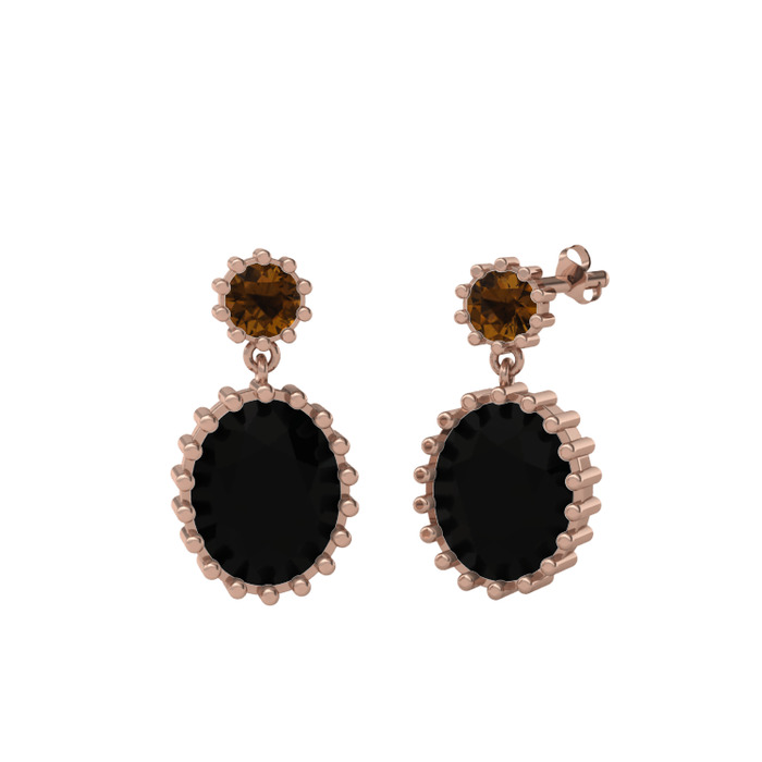 Dumanlı kuvars ve siyah zirkon 14 ayar rose altın küpe