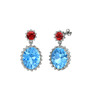 Garnet ve akuamarin 14 ayar beyaz altın küpe