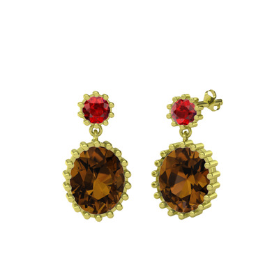 Garnet ve dumanlı kuvars 14 ayar altın küpe