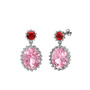 Garnet ve pembe kuvars 14 ayar beyaz altın küpe