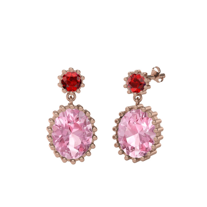 Garnet ve pembe kuvars 925 ayar rose altın kaplama gümüş küpe