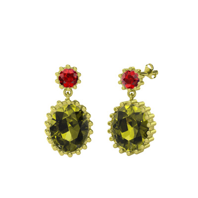 Garnet ve peridot 14 ayar altın küpe