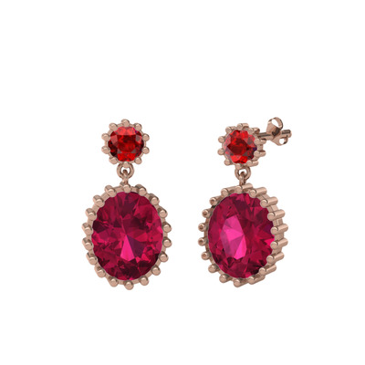 Garnet ve rodolit garnet 14 ayar rose altın küpe