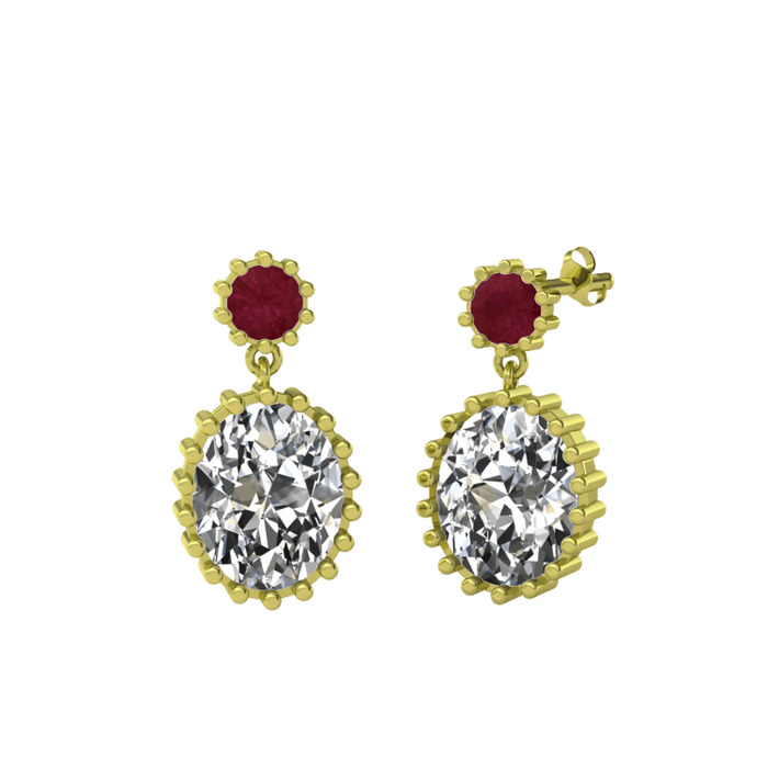 Kök yakut ve beyaz zirkon 14 ayar altın küpe