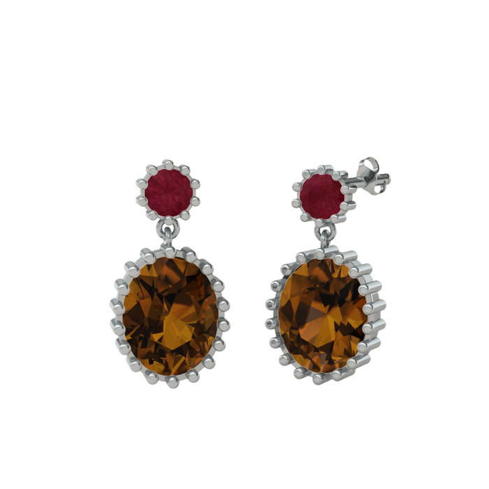 Kök yakut ve dumanlı kuvars 925 ayar gümüş küpe
