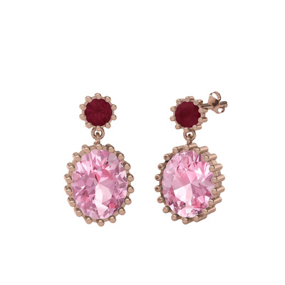 Kök yakut ve pembe kuvars 18 ayar rose altın küpe