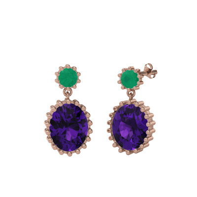 Kök zümrüt ve ametist 18 ayar rose altın küpe