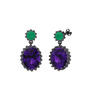 Kök zümrüt ve ametist 925 ayar siyah rodyum kaplama gümüş küpe
