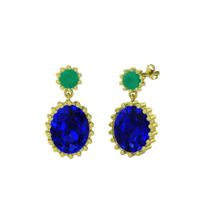 Kök zümrüt ve lab safir 14 ayar altın küpe