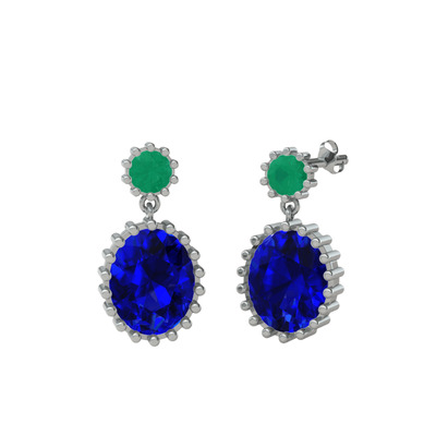 Kök zümrüt ve lab safir 14 ayar beyaz altın küpe