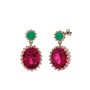 Kök zümrüt ve rodolit garnet 14 ayar rose altın küpe