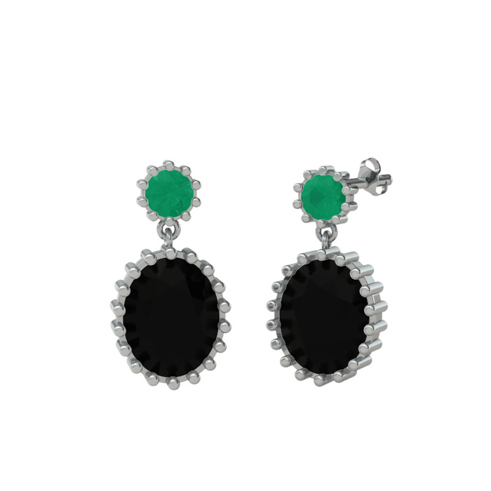 Kök zümrüt ve siyah zirkon 8 ayar beyaz altın küpe