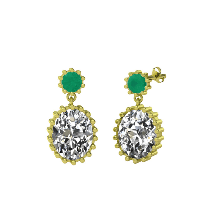 Kök zümrüt ve swarovski 14 ayar altın küpe