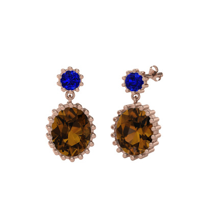 Lab safir ve dumanlı kuvars 925 ayar rose altın kaplama gümüş küpe