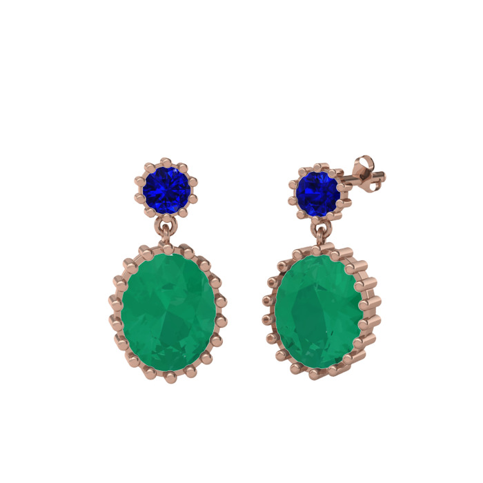 Lab safir ve kök zümrüt 8 ayar rose altın küpe