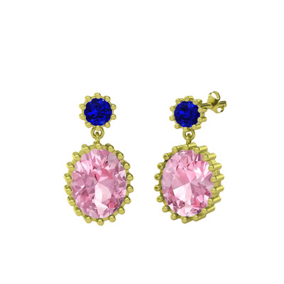 Lab safir ve pembe kuvars 14 ayar altın küpe